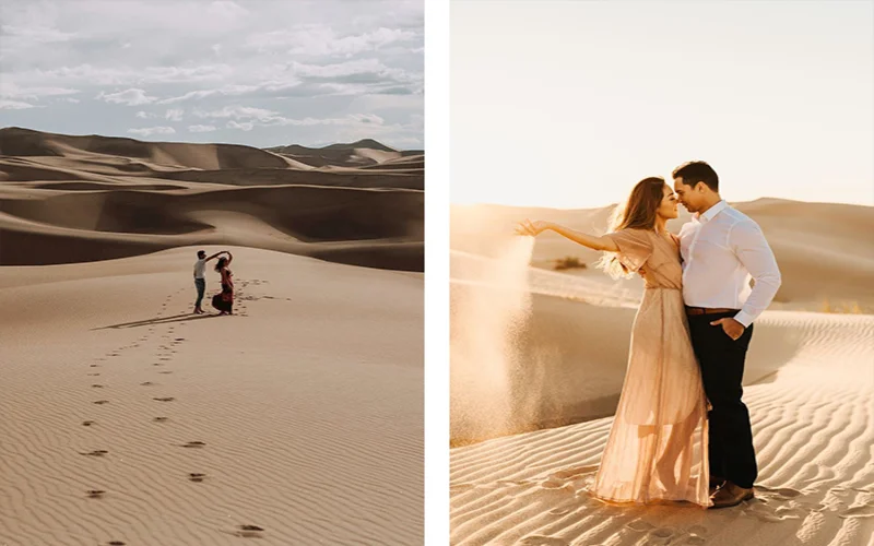 3. در بین ماسه‌های کویر دراز کشیده و عاشقانه به چشم‌های هم خیره شوید.