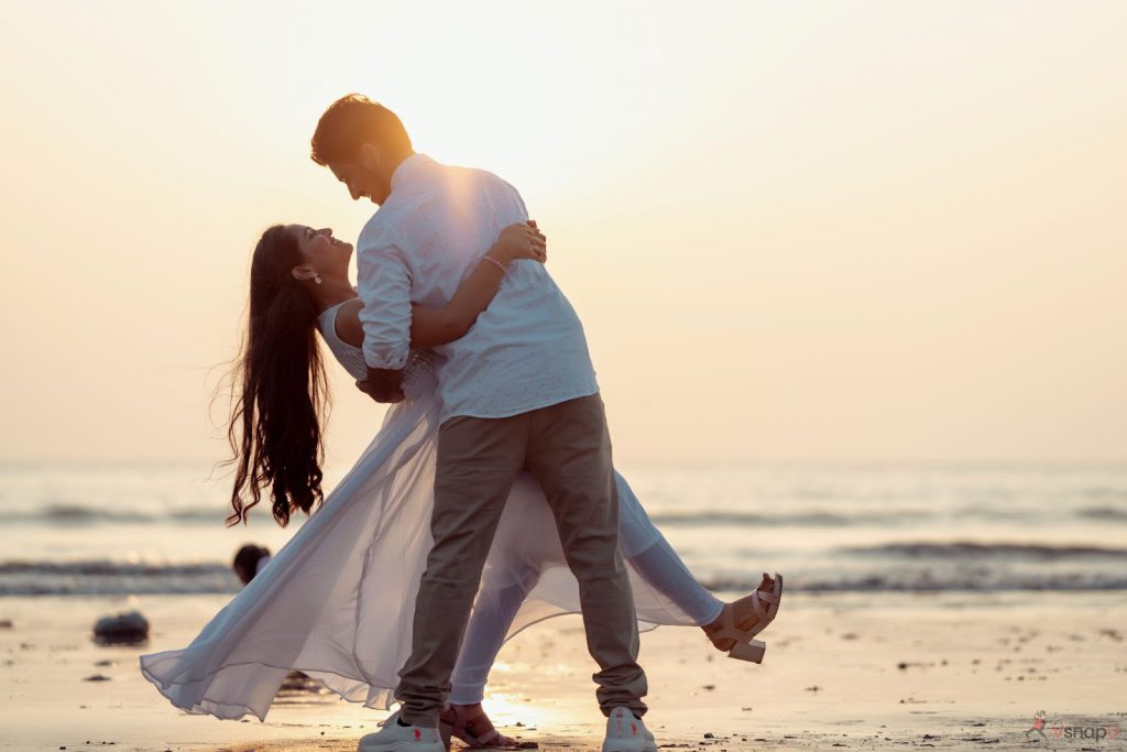9. از ژست‌های عاشقانه عکاسی فرمالیته عروسی در ساحل می‌توان به ژست در آغوش کشیدن کلاسیک اشاره کرد که هرگز از مد نمی‌اُفتد. برای ثبت این ژست، روبه روی هم یا پهلو به پهلو بایستید، به طوری که یکی از طرفین دستان خود را دور کمر دیگری بپیچد. یک نگاه یا لبخند محبت‌آمیز هم می‌توانید زیبایی این عکس را چندین برابر کند.
